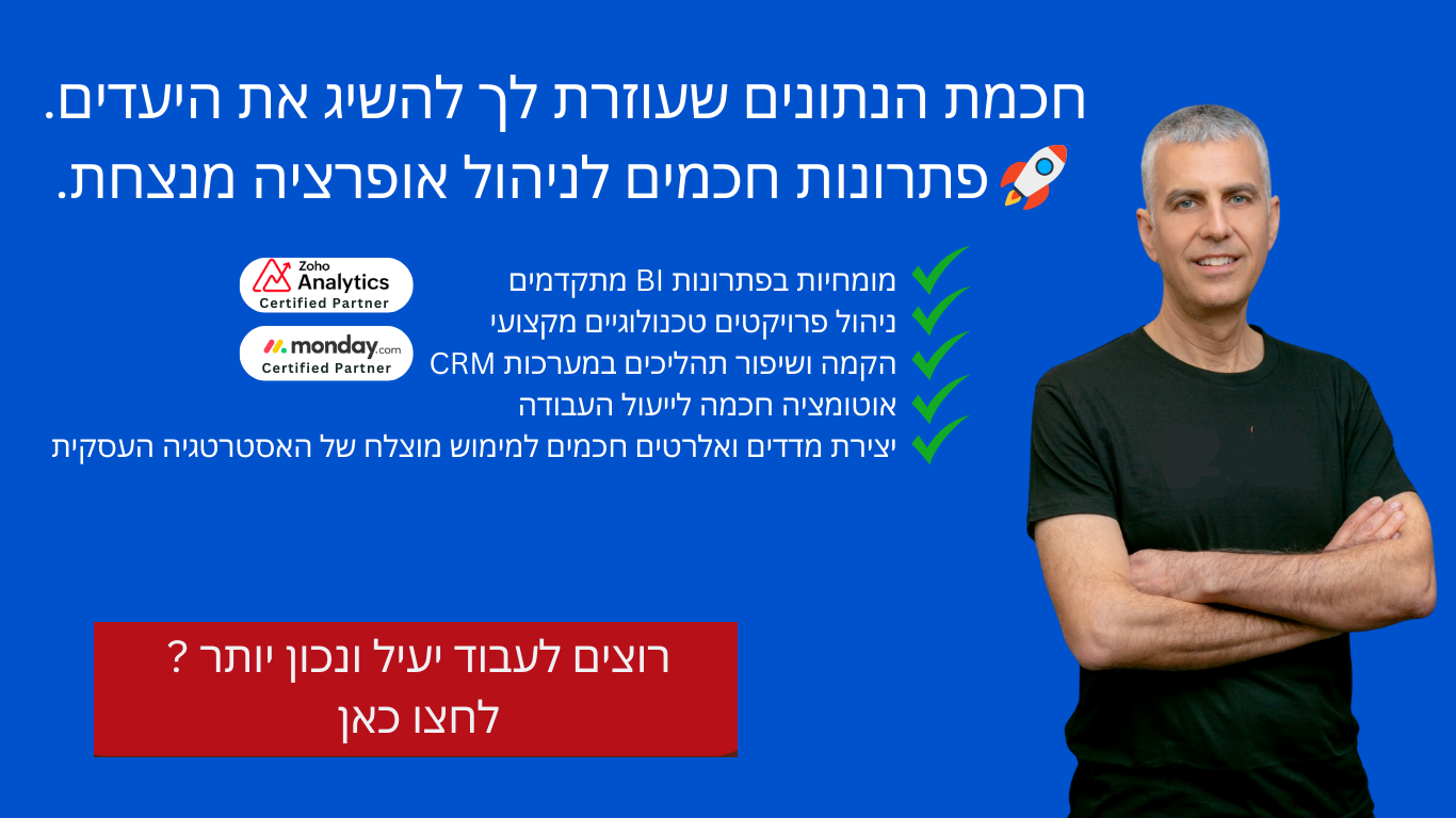 📌 דשבורדים חכמים – לוחות מחוונים מותאמים אישית שמרכזים את כל הנתונים הנחוצים לקבלת החלטות מהירות ונכונות.