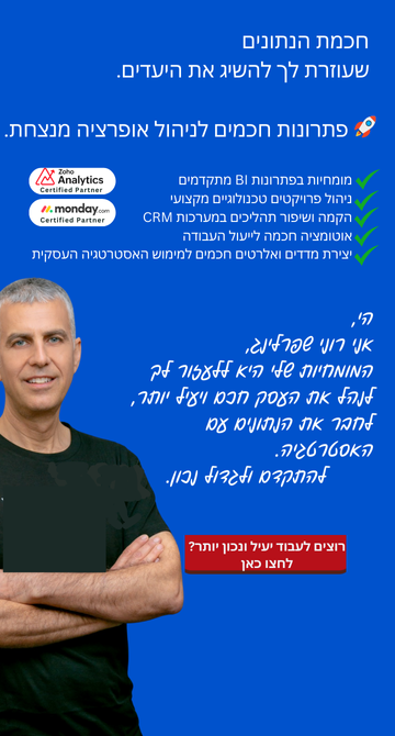 יצירת מסכי דשבורד אינטגרטיבים , יישום באמצעות מערכת Zoho Analytics (Certified Partner).